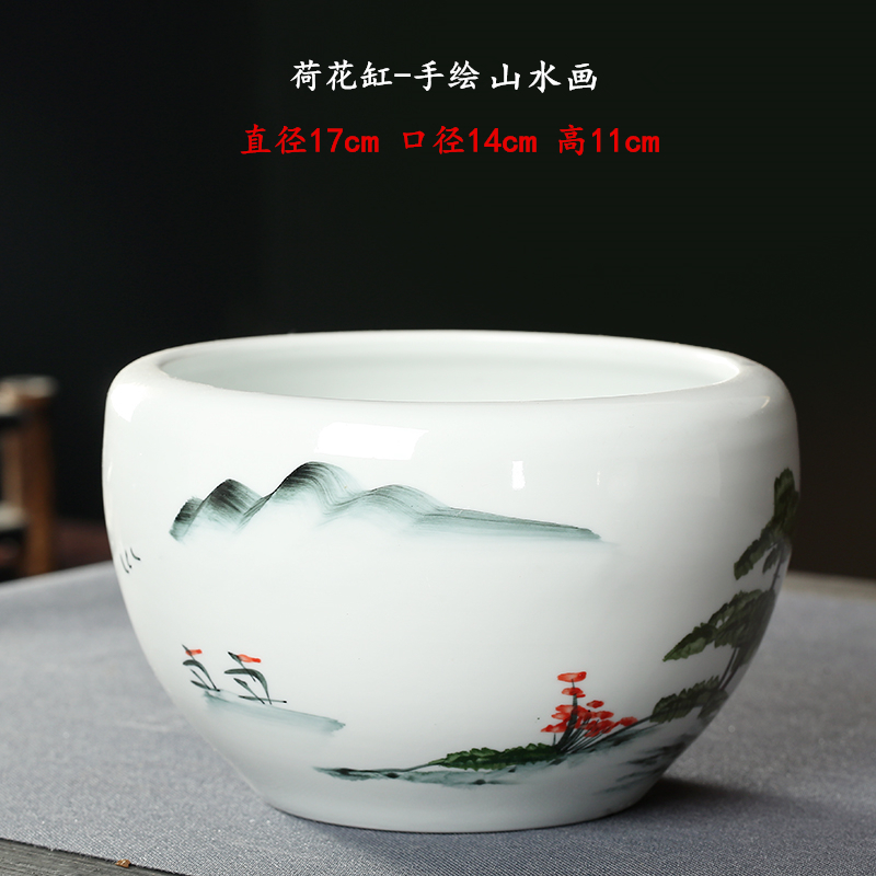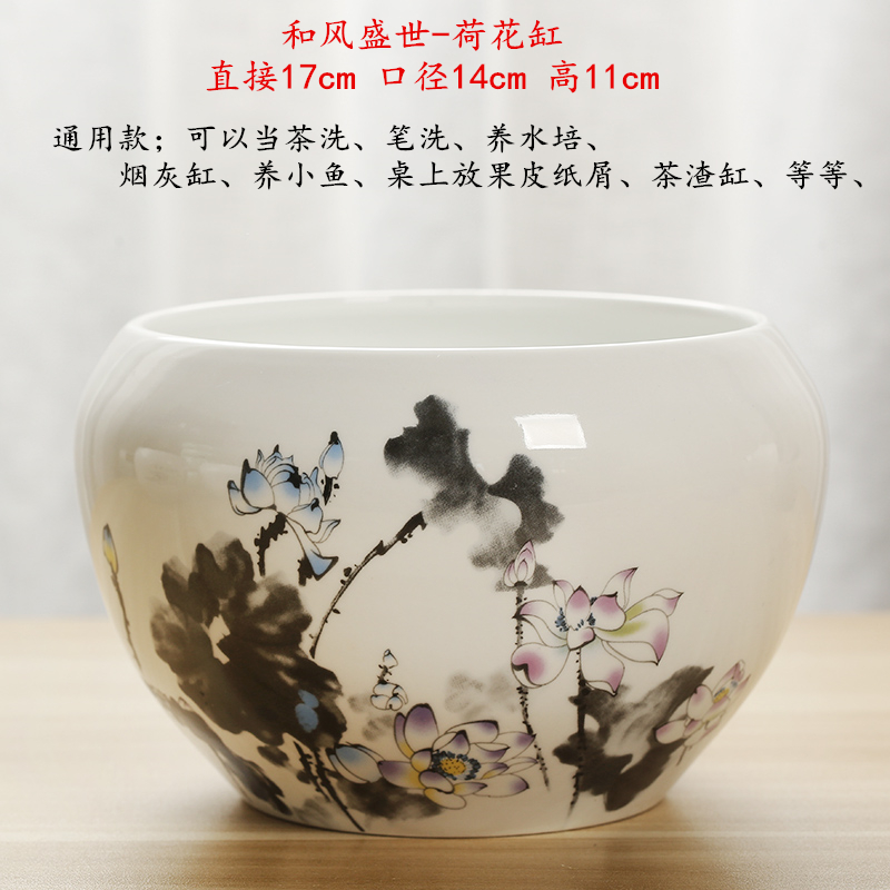 Tea wash large white porcelain tea residue cylinder Hand-painted ceramic hydroponic fish tank pen dish wash bowl Tea set accessories utensils