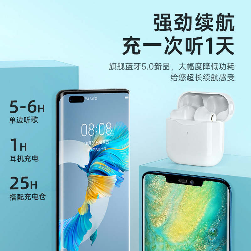 True wireless bluetooth headset binaural in-ear without delay suitable for huawei Huawei mate40 30 noise reduction original p40pro 30 glory v10 running super long standby Apple