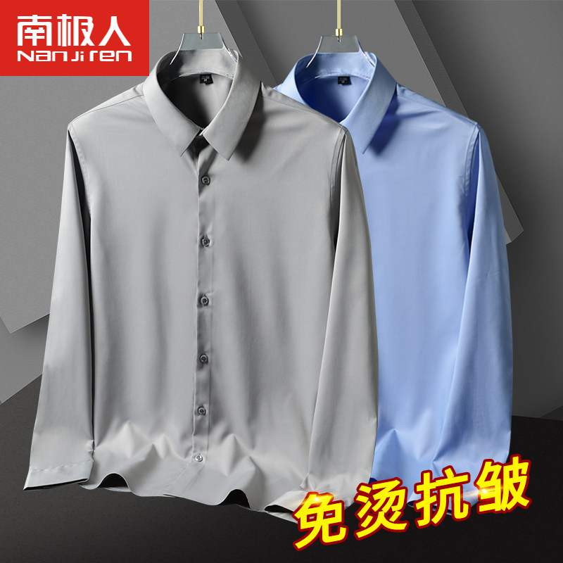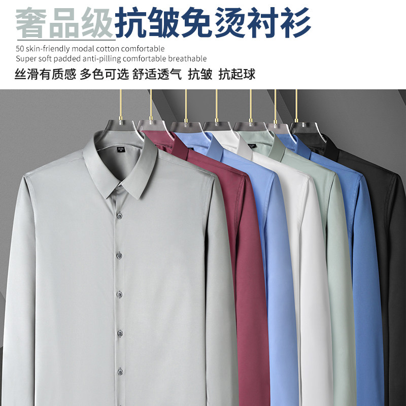 2021 Springtime Men's Shirt Long Sleeves Superior Feel Crewless High-end Casual Korean Version Tide Vertical Striped White Lining Inch