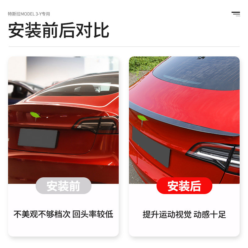 Suitable for Tesla ModelY tail high performance P version Model3 ya non-perforated carbon fiber special modification