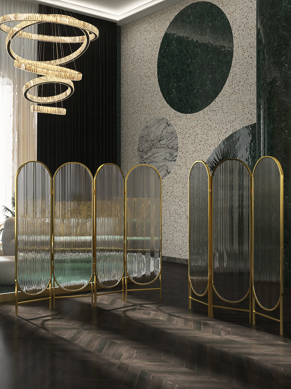 Modern light luxury Changhong glass folding screen partition can be moved without installation ins net red Nordic living room decoration