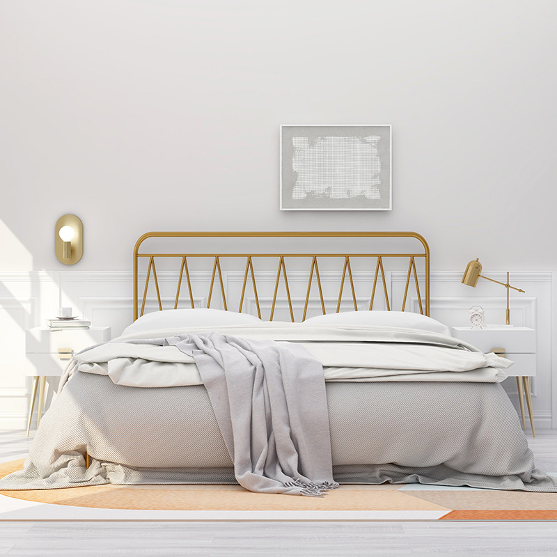 Golden iron art bed light luxury modern minimalist ins style 1 5 meters 1 8 bed net red double bed metal bed Nordic iron