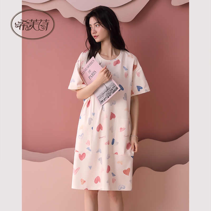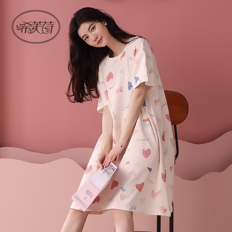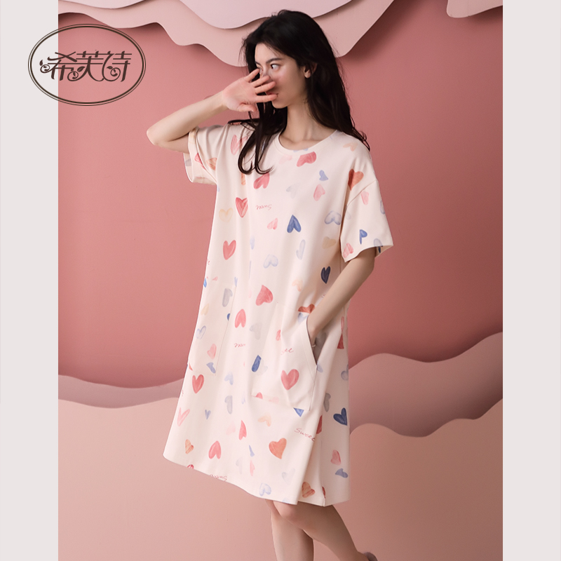 2022 New Summer Pure Cotton Sexy Spring Autumn Female Short Sleeve Loose Sleeping Skirt Thin family clothes girl foreign dress