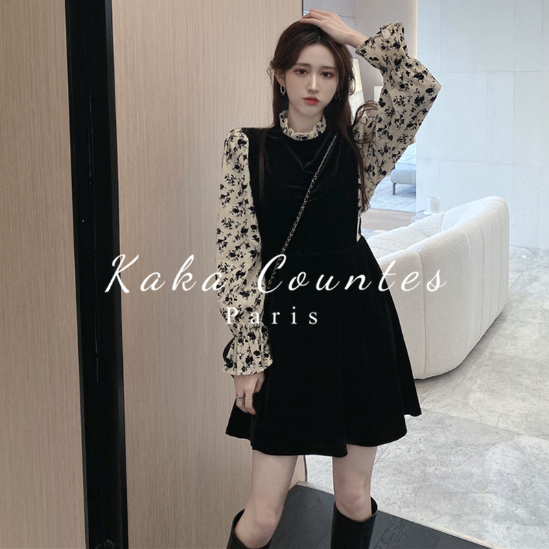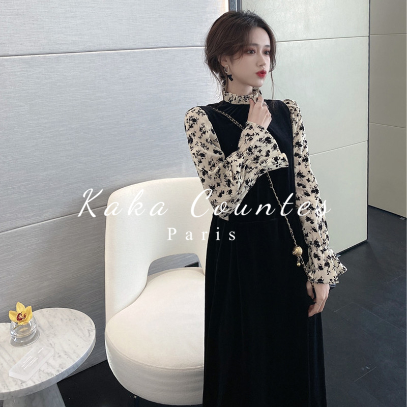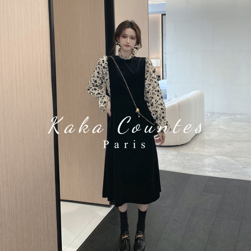 Sandro Moscoloni2022 spring new retro Hebbon wind black gold velvety crumblea woman