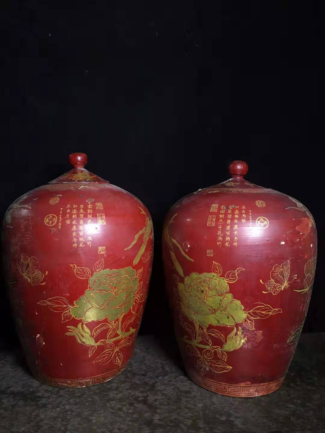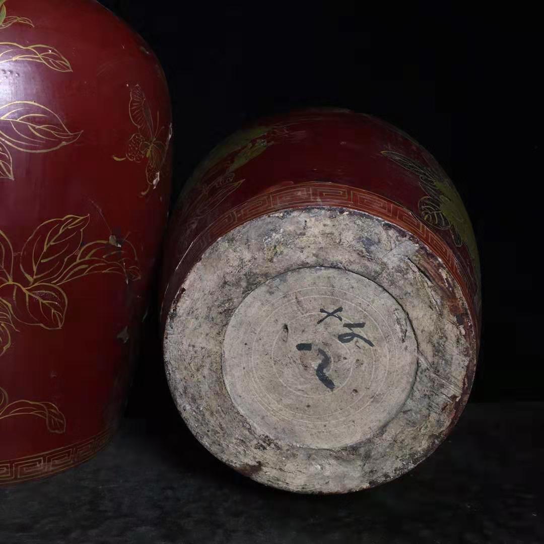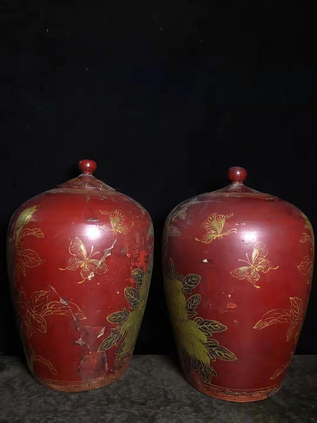 The folk collection of old paint deposits will a pair of cans 32 cm high