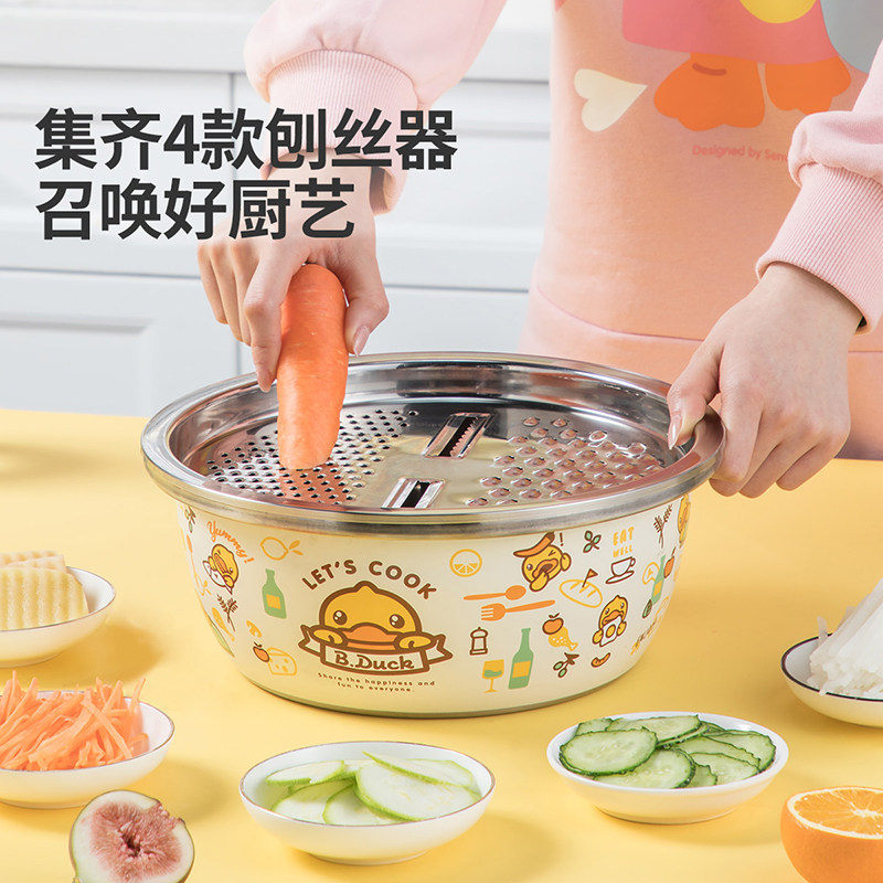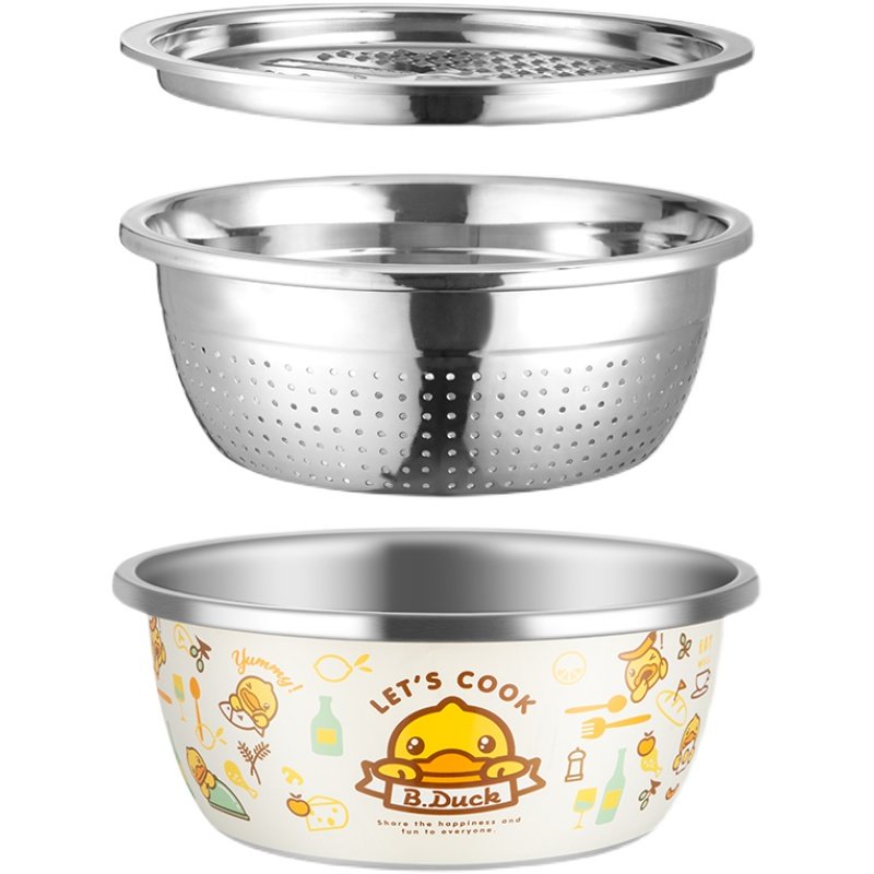 Cooking Great Yellow Duck Thicken 304 Stainless Steel Basin Griddle Wire three sets of washing vegetable fruit noodles Basin bowls Public leaky basin