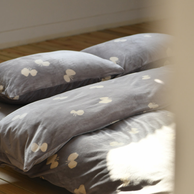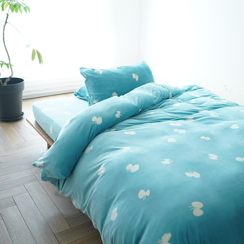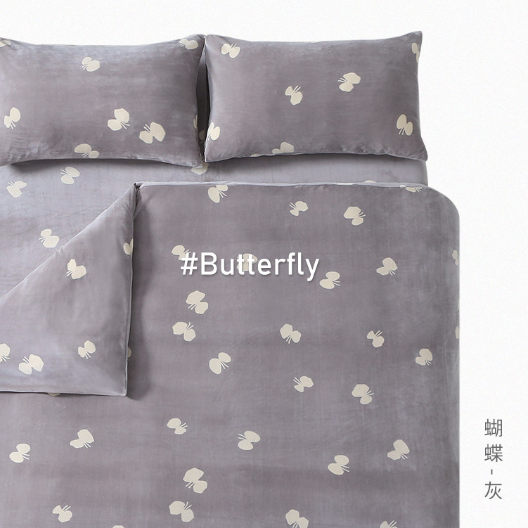 CastleGarden with high density of baby suede bed Quilt Cover Bed with Pillow Case Butterfly Grey Lake Blue