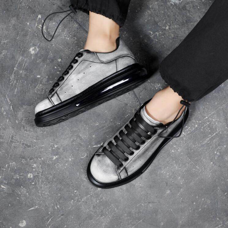 2022 new McQuinn small white shoes Men's Korean version 100 Lapped Thick Bottom Heightening Casual Pine Pastry Personality Color Painted Board Shoes