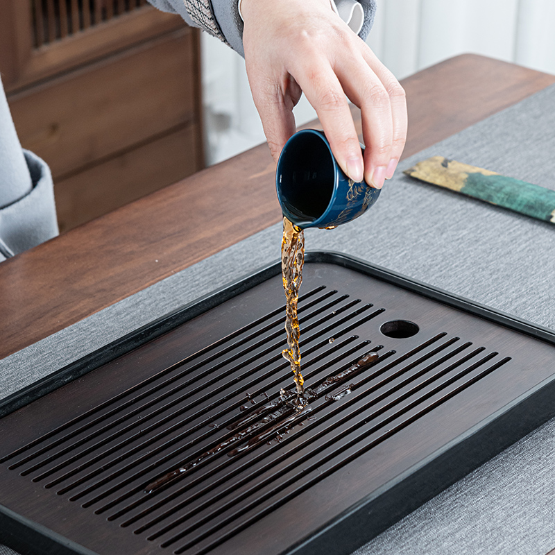 Blue (ten thousand foparting door) Automatic-Six cups (special price limit purchase of 1 set) Automatic tea set (dark incense thinning) Tea Road Alloy-Golden-blue (Fugui Gold Mountain) Six Cups Rectangular (Stripes)