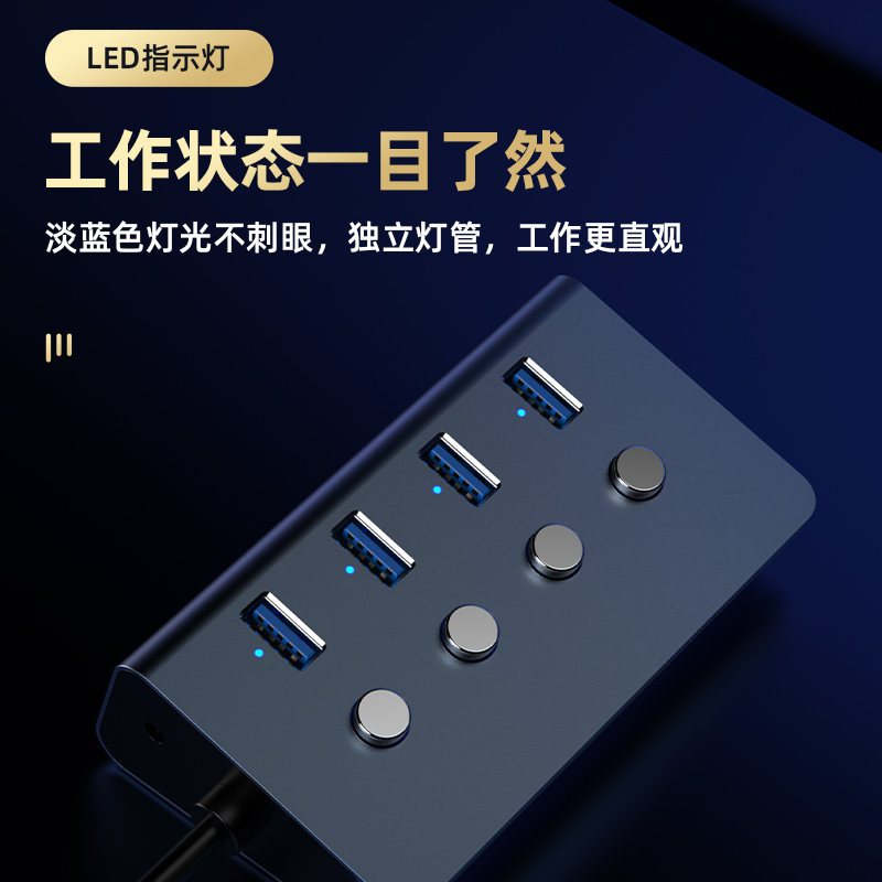 USB3 0hub High Speed with Switching Power Expander Hub Multi-Interface Extension Cable Notebook Taiwan Computer Converter Adapter Plug Multi-Port Extension Aluminum Extension Cable