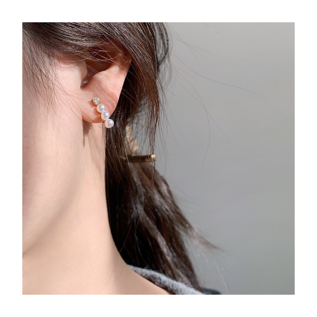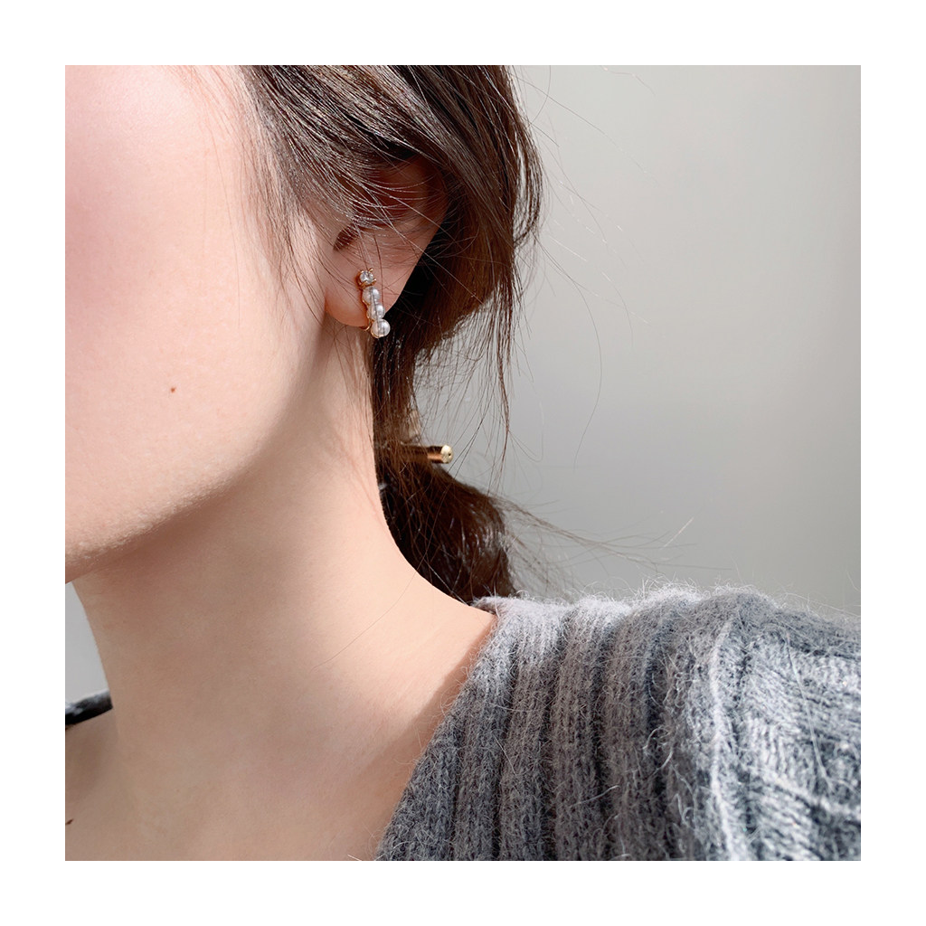 (W Dear) Original French small pearl ear clips without ear holes female mosquito coils temperament simple and small earrings