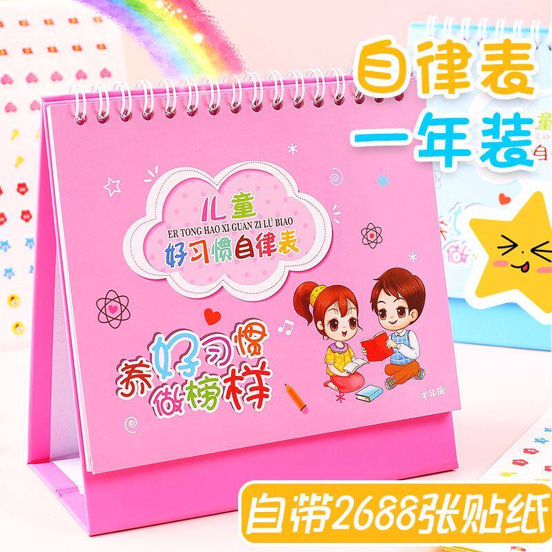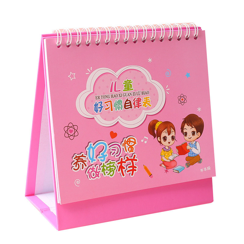 Table calendar Self-discipline Table Primary students Children growing Kindergarten Small red floral paper stickup for children's watch class Children's watches