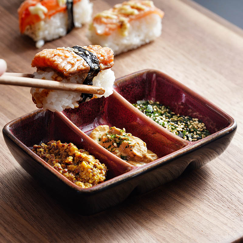 Three-lattice seasoned sauces-kilns of red three-lattice seasoned sauces-kiln-changing beige-three-lattice seasoned sauces-Kilns Brown Grey Triple-Sauces-Kilns for Cat Eye Blue