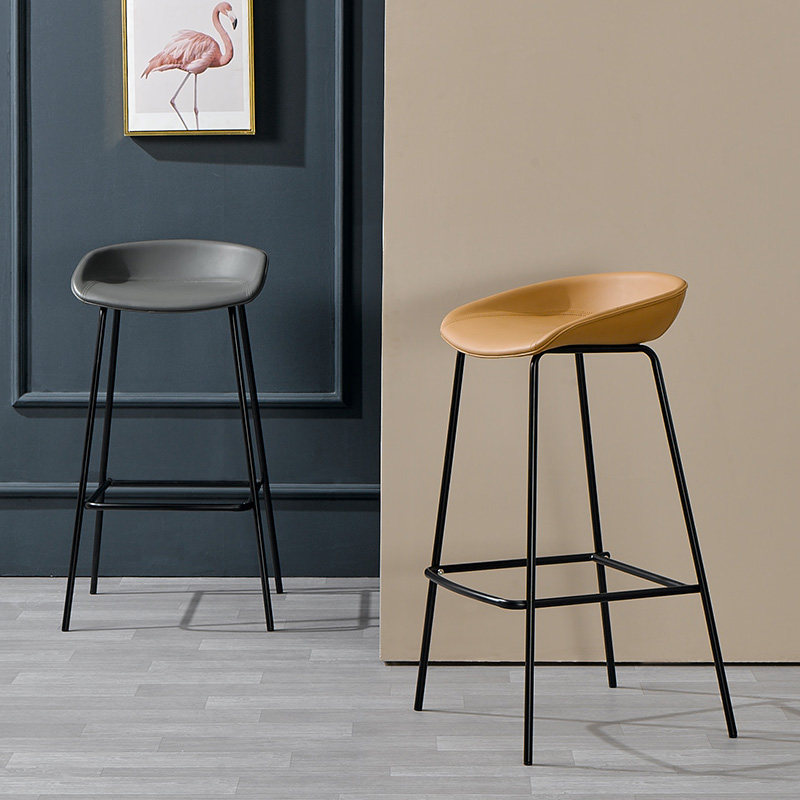 Nordic iron light luxury modern simple milk tea shop home coffee shop high chair bar stool leather bar chair