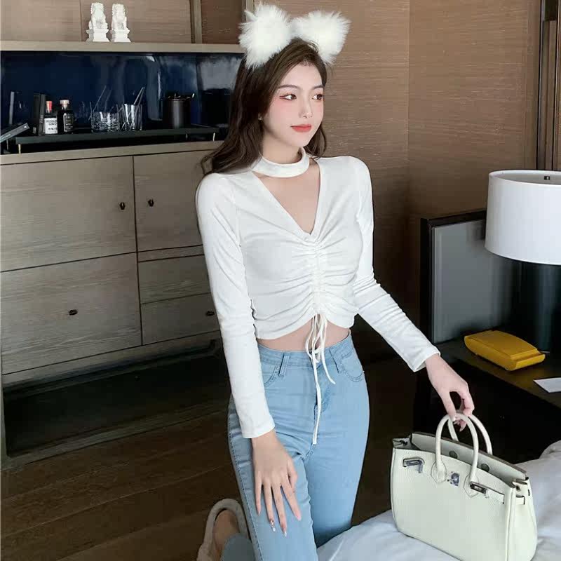 Vanya Fall Winter White Blade Woman Han Edition Design Sense of the Cutting Rope Excluded Long Sleeves