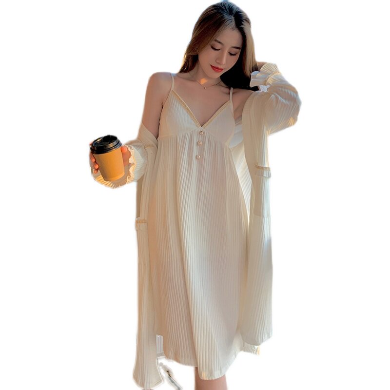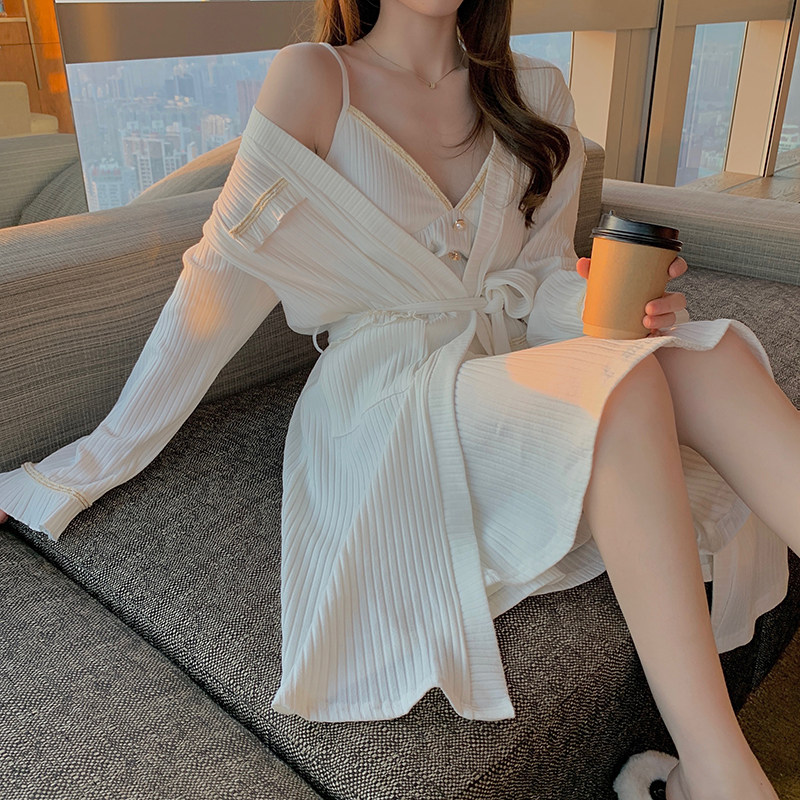 White small fragrant wind sleeping skirt Sleeping burqa suit black small fragrant wind sleeping dress sleegown suit