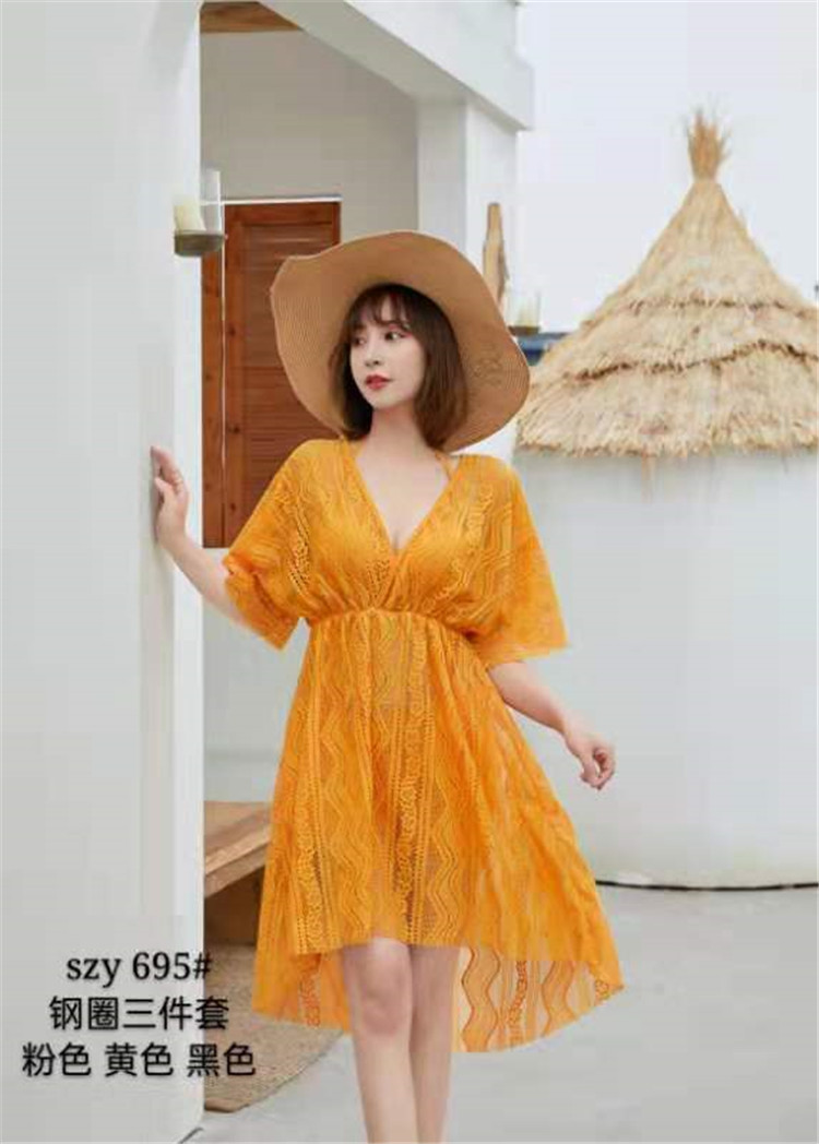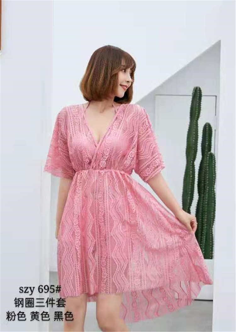 Swimsuit Women's Slim Sexy Bikini 695 Lace Pure Color Three Sets Steel Nursery 2021 New Spa Swimsuit