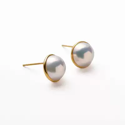(Hepburn) minimalist design seawater horse Bay pearl earrings female Aurora small bulb with color rich semi-circle Mabe