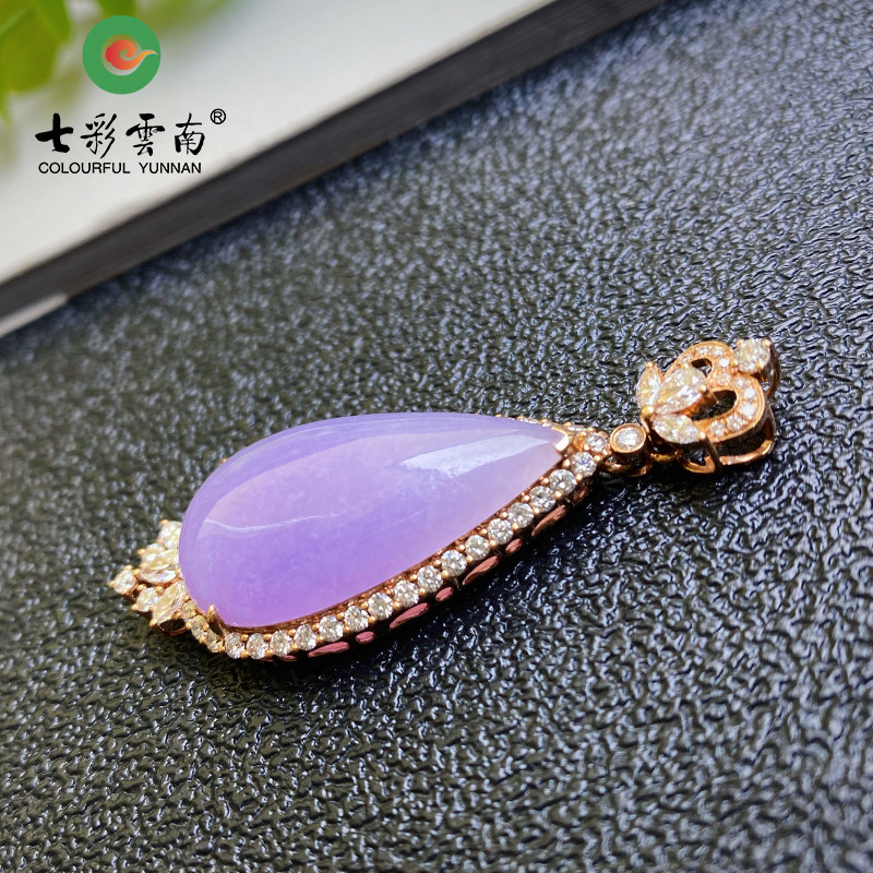 Colorful Yunnan Burma A goods natural jade with certificate ice violet inlaid pendant