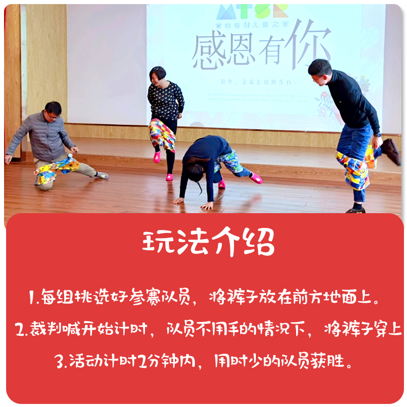 Apostles wearing pants * 1 strips of sugar hat * 1 set of blindfolded with each other * 1 set of fumbling ball props * 1 set of CDs tug-of-war * 1 set of joyred balloons * 1 set