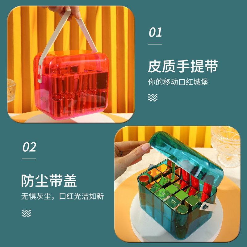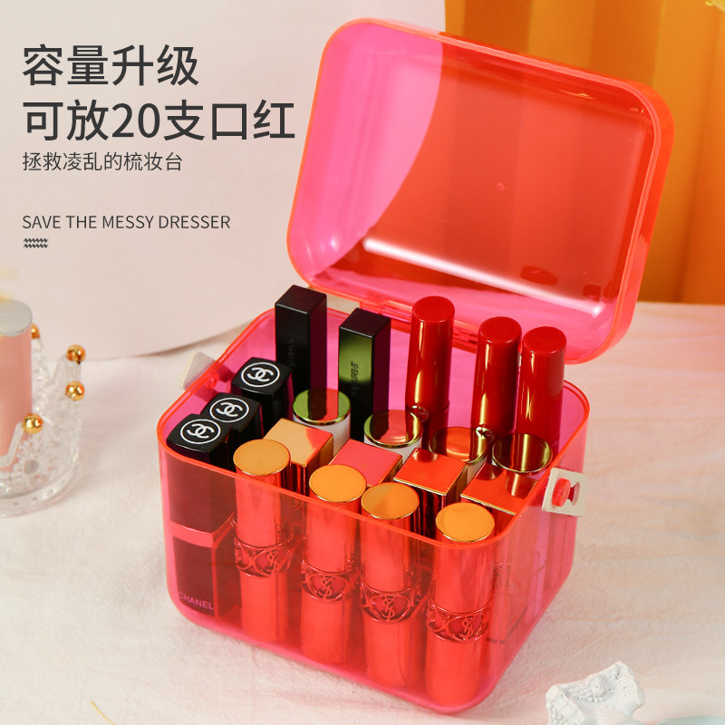 Lipstick containing box large capacity Dogg lip glazed box rectangular eye shadow mesh red cosmetics with lid anti-dust shelf