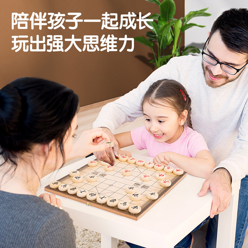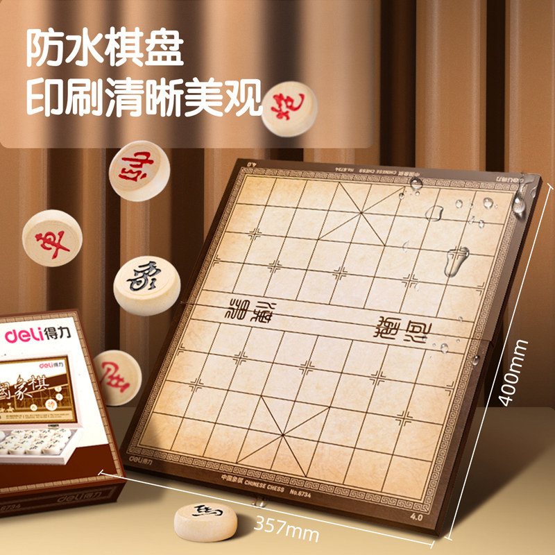 Deli Chinese chess Student Wooden chess Large chess Solid wood like chess Xiang chess Rubber chess Wooden folding chessboard