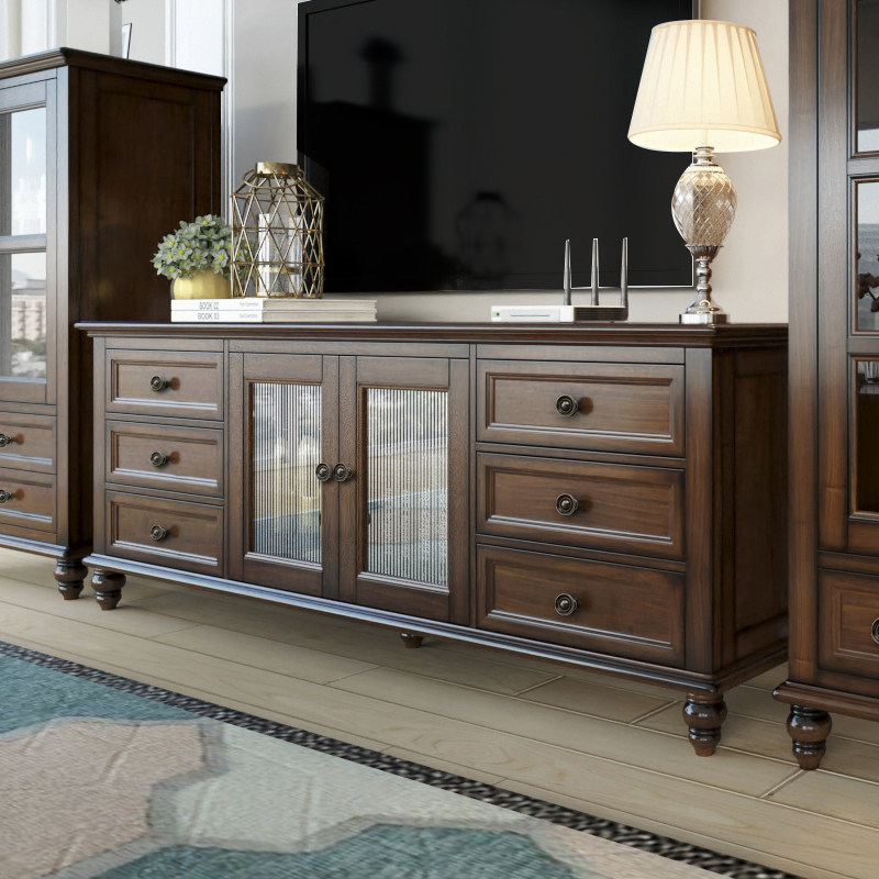 American country all solid wood TV cabinet combination retro old simple and beautiful living room small apartment bedroom TV cabinet high
