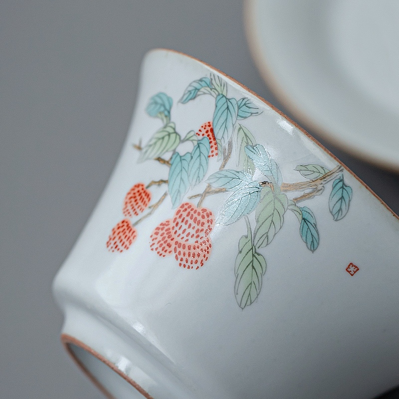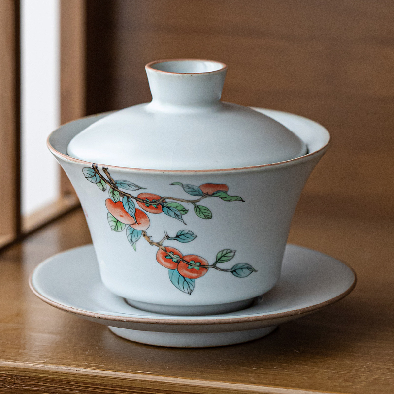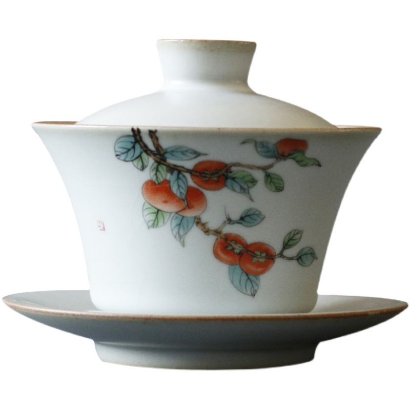 Ru kiln covered bowl-opened pomegranate covered bowl-persimmon covered bowl-hawthorn covered bowl-loquat covered bowl-lychee covered bowl-wisteria covered bowl