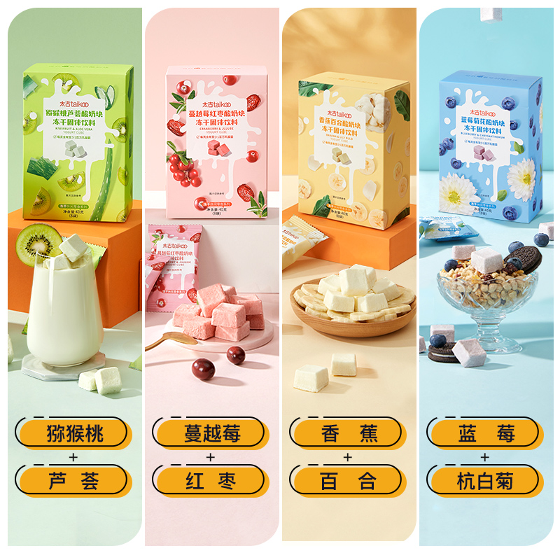 1 box of blueberry chrysanthemum yogurt cubes + 1 box of cranberry red date yogurt blocks + 1 box of banana lily yogurt blocks