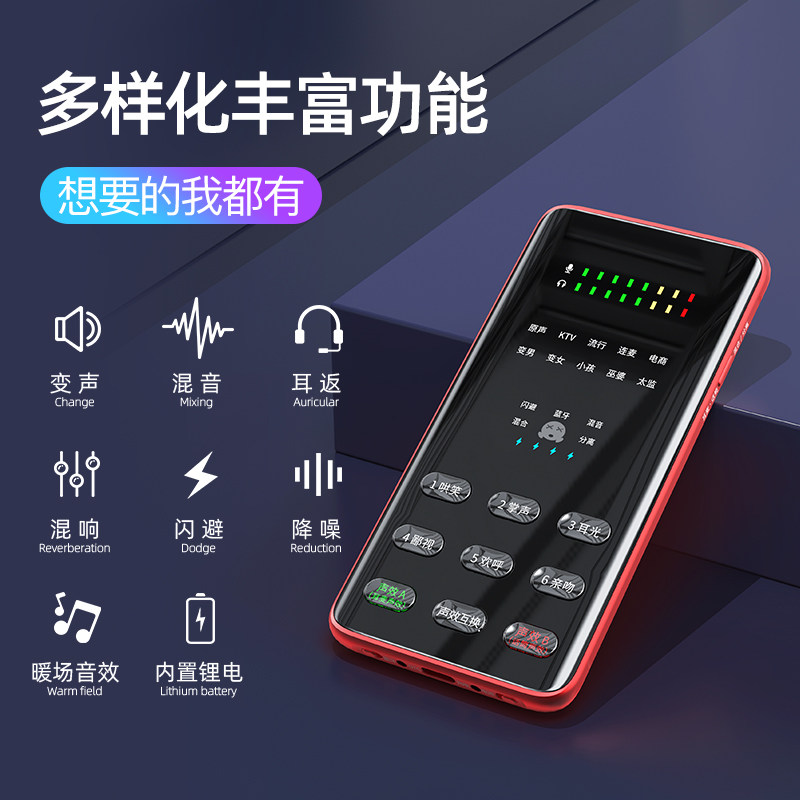FX6 external sound card singing mobile phone special net red outdoor microphone set Computer desktop anchor beautify sound live broadcast equipment Full set of shaking tape cargo recording K song universal
