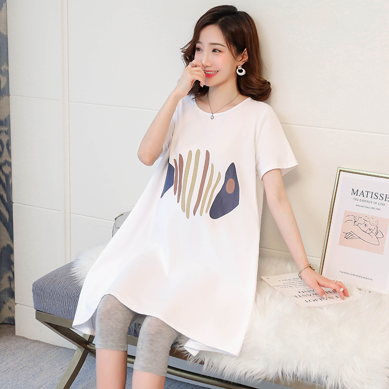 Summer dress pregnant woman Ocean dress Korean version short sleeve round collar T-shirt dress Summer 2022 new large size dress Belly Casual Blouse