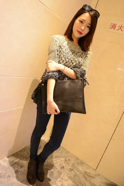 Hong Kong I Tgreg clutch bag simple large-capacity messenger shoulder bag envelope bag handbag crocodile pattern file bag