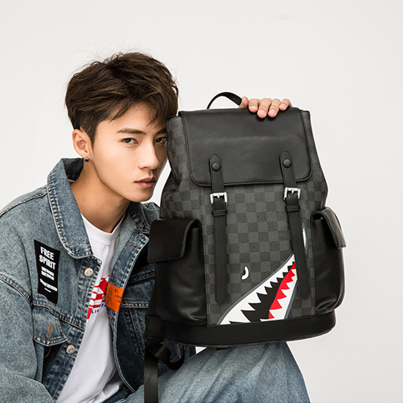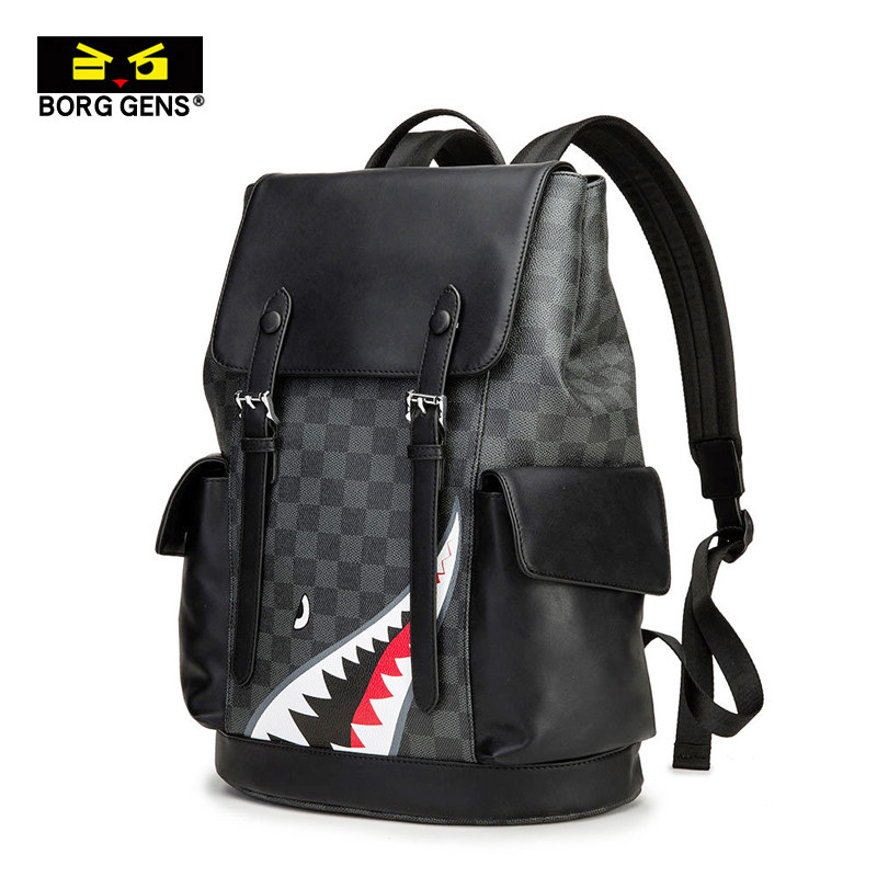 borggens backpack men's backpack casual business computer bag tide brand fashion plaid leather schoolbag large capacity