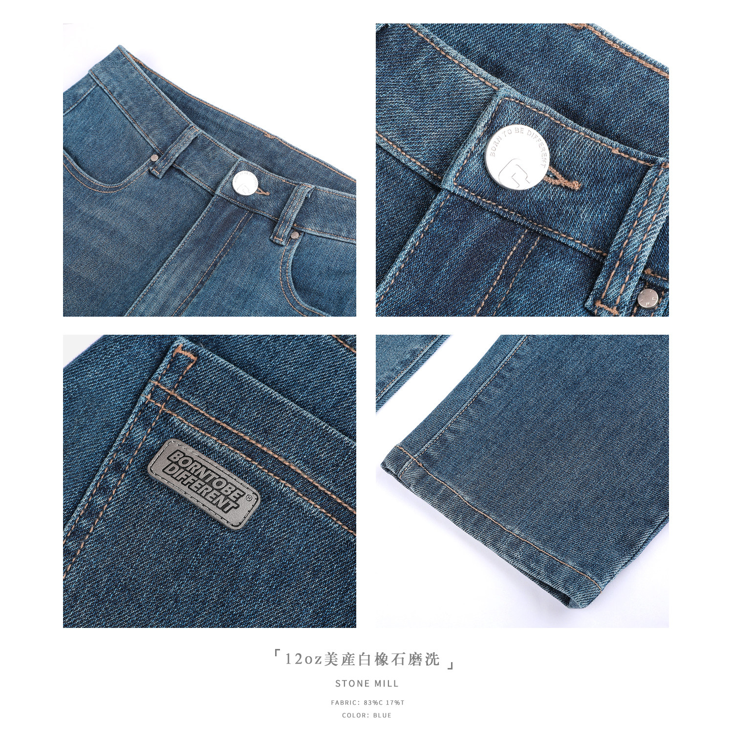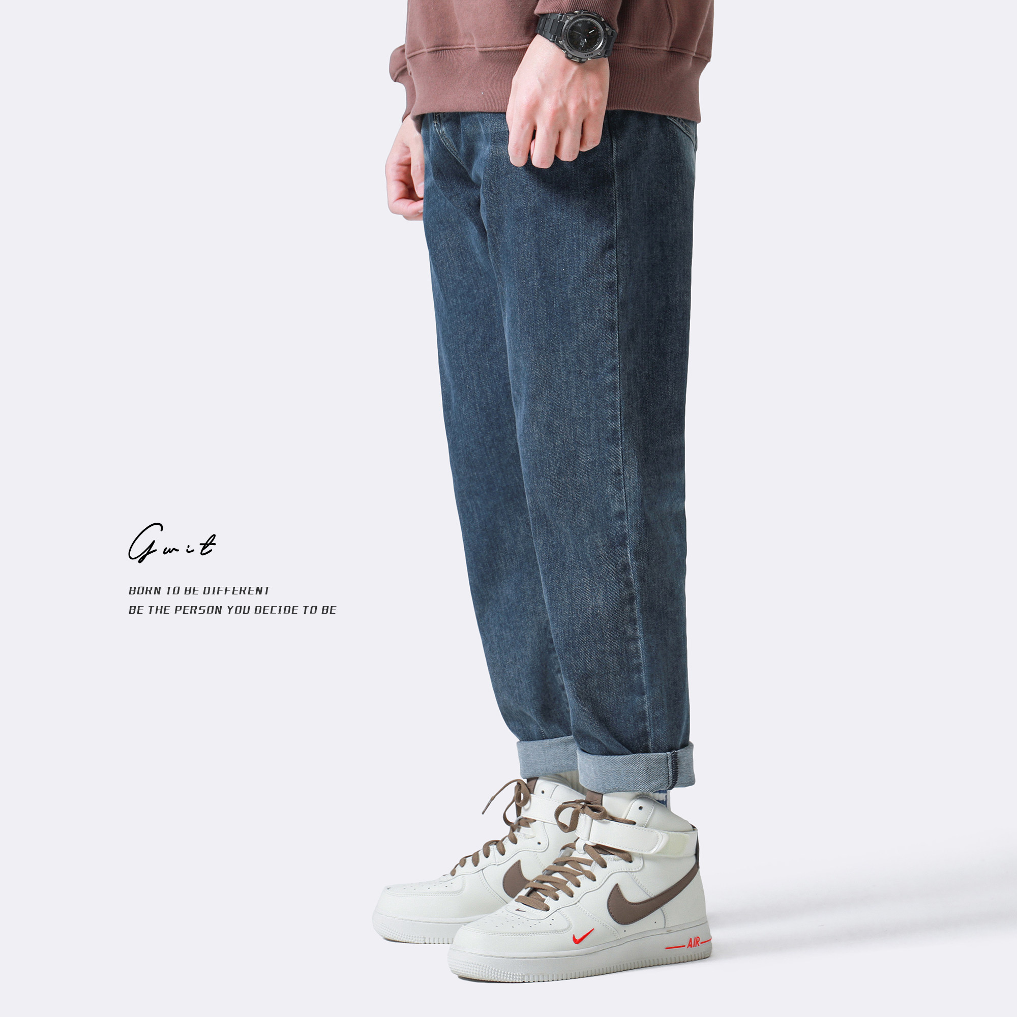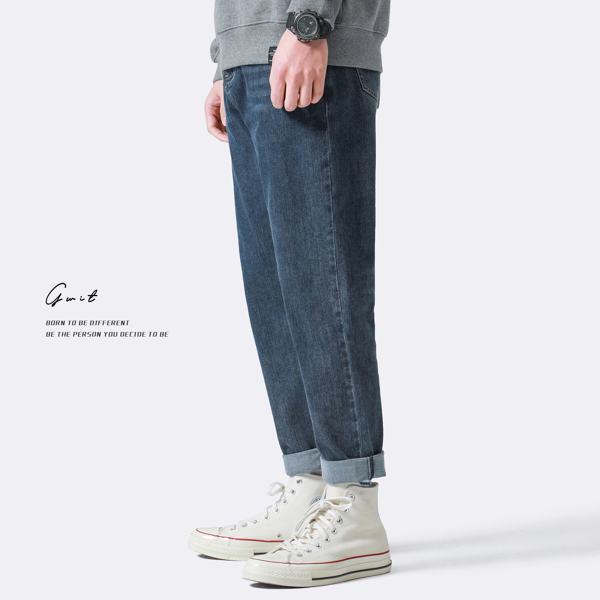 GWIT 12oz beauty white oak spring autumn new loose straight drum micro-bounty casual long pants denim smoke pipe pants man