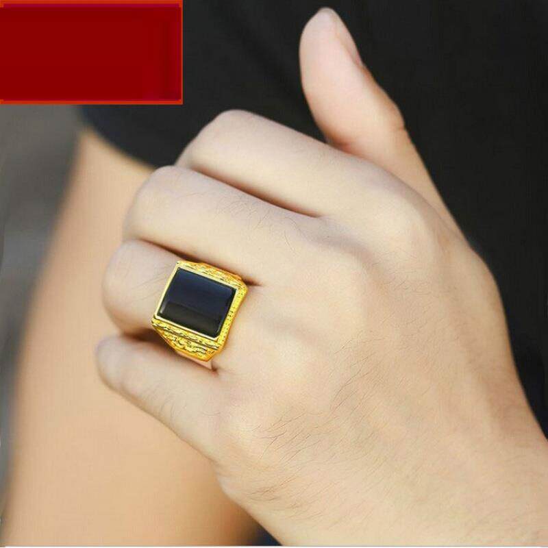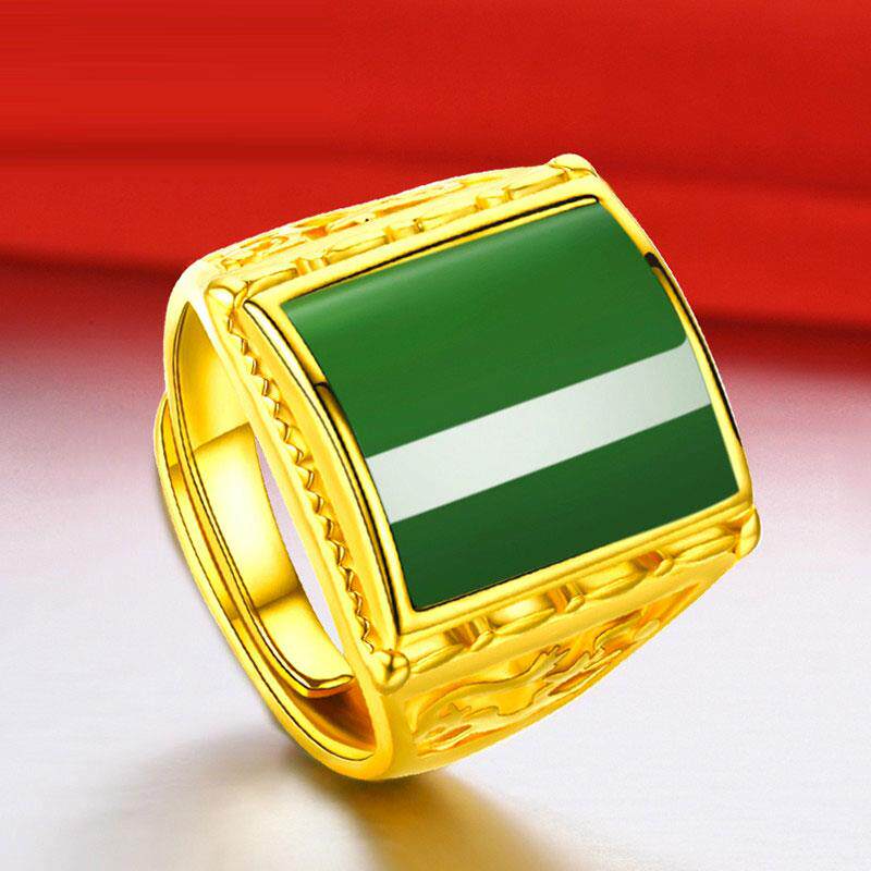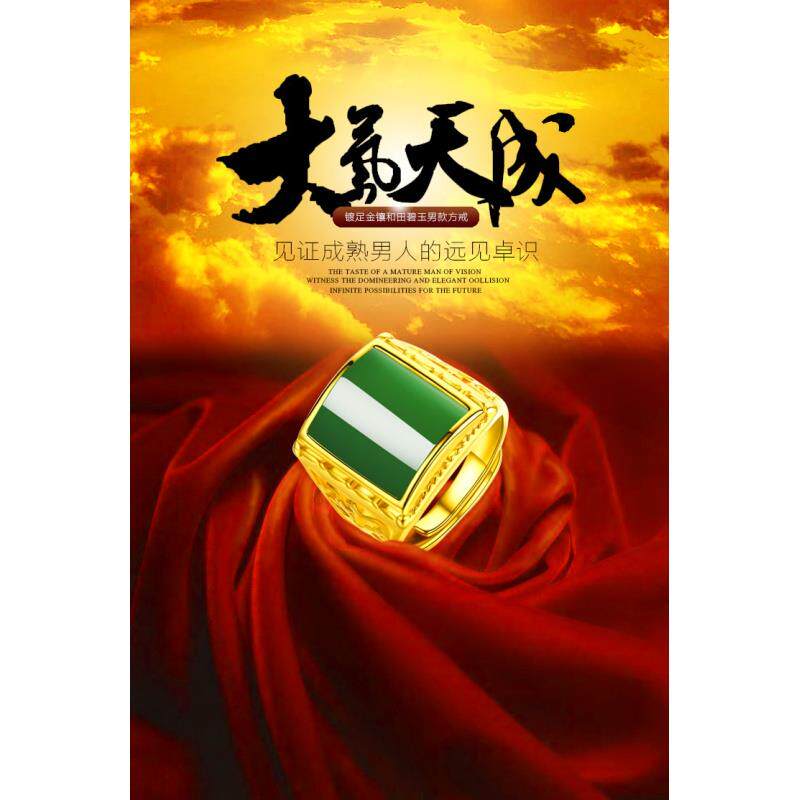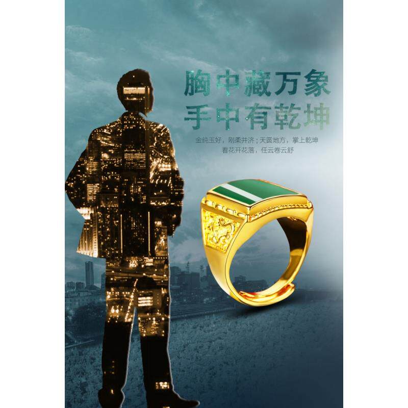 Zhou Dafu Huanmei gold ring men's gold inlaid jade men's ring 18K gold and Tian Yubeu men's living mouth