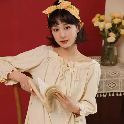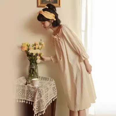 Nightdress female Spring and Autumn new long sleeve cotton sweet princess wind loose lady cotton summer pajamas home clothes