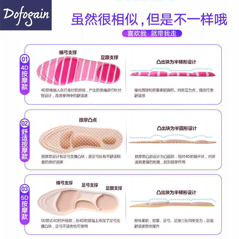 4 pairs of insoles for women soft bottom comfortable breathable sweat-absorbing deodorant thickened ultra-soft high heels sports shock-absorbing insoles for men
