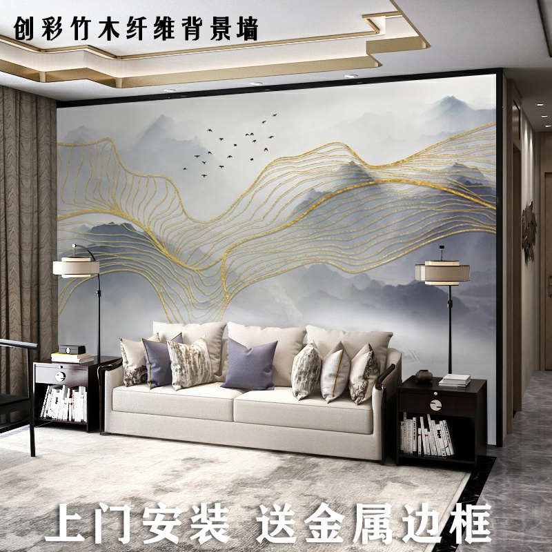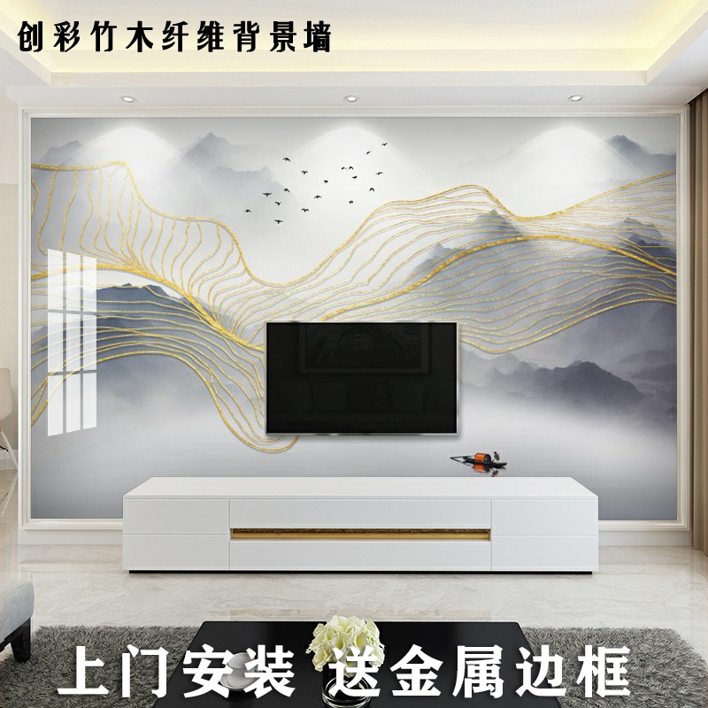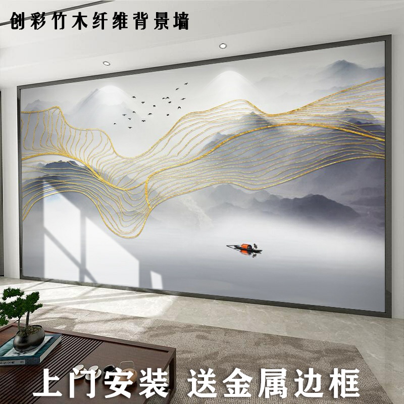 Creative Chinese landscape bamboo wood fiberboard custom background wall integrated wall version living room sofa wall ring protection wall panel
