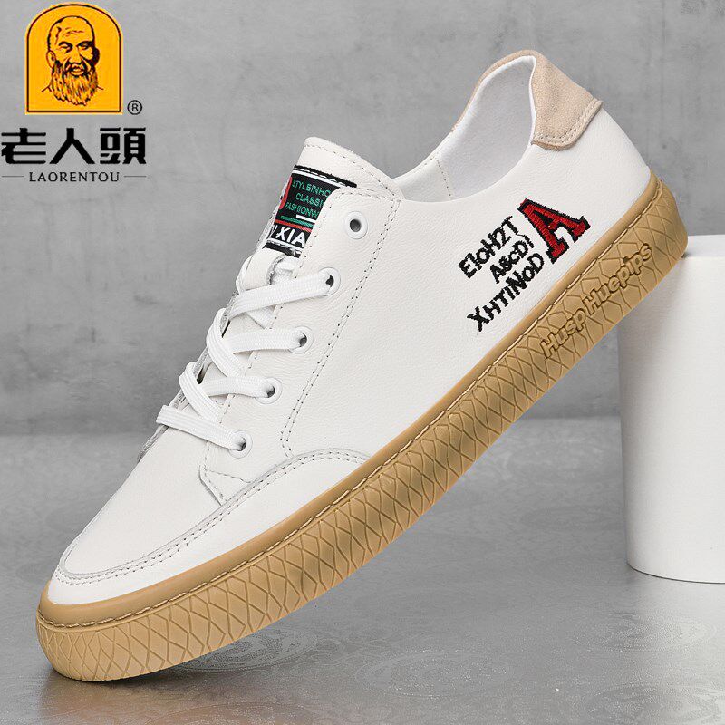 Old man's head men's shoes summer leather breathable beef tendon soft bottom small white shoes non-slip light travel shoes sports leisure shoes
