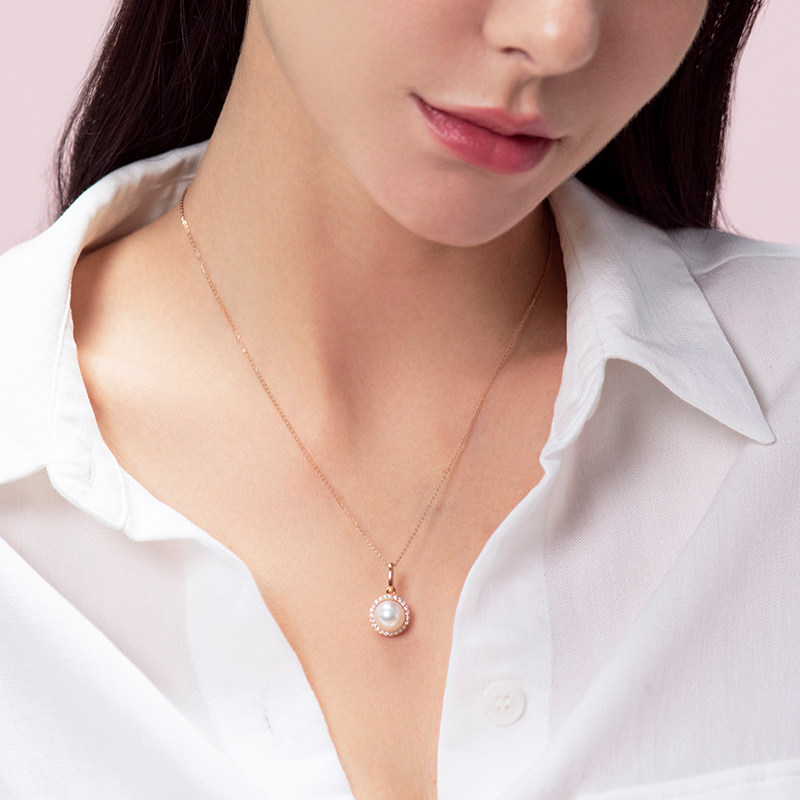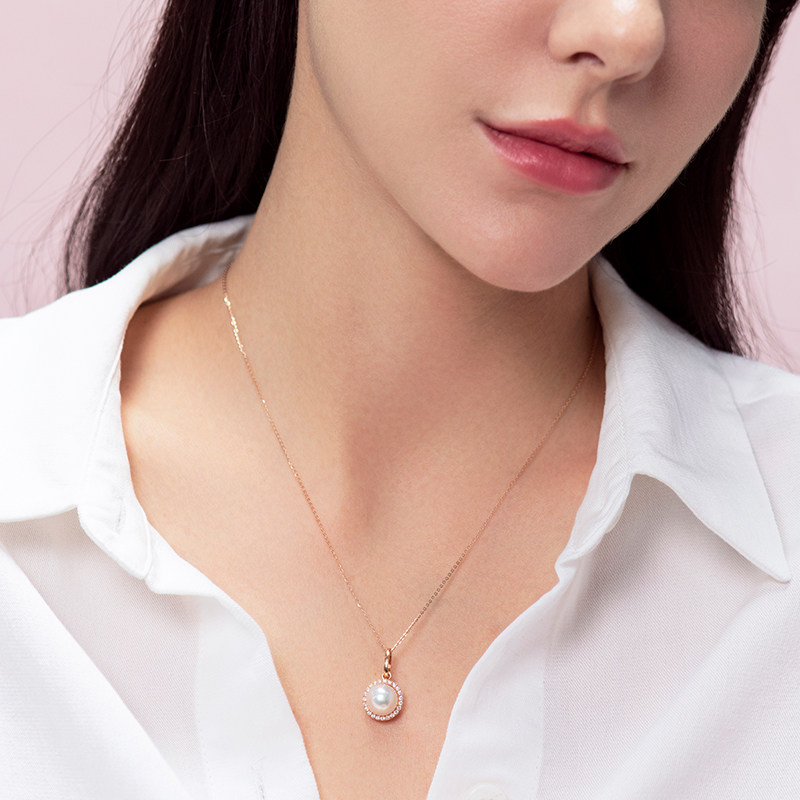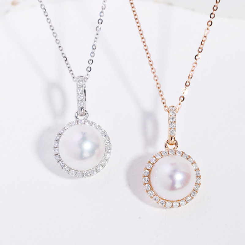 Gio jewelry Akoya Seawater Pearl Necklace Women's Natural Diamond 18K Gold Pearl Pearl Gift Gift