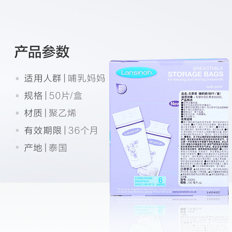 Lansinoh Lansinoh imported milk storage bag 50 pieces of fresh-keeping bag disposable milk storage milk bag 180ml