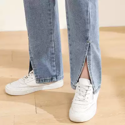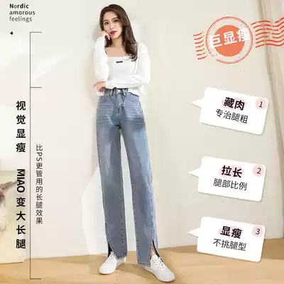 Front split jeans women's high waist slim 2021 spring new small man high Korean version of Joker wide leg pants