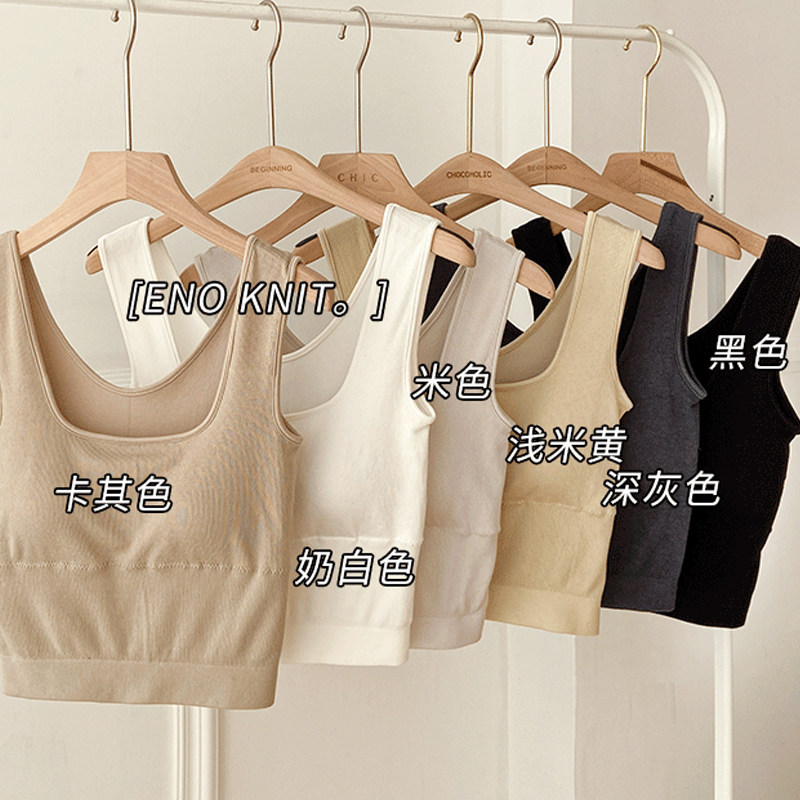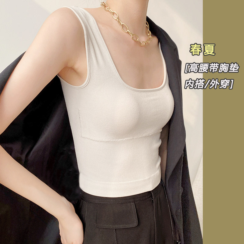 Spring and summer vest women's suspenders low U-neck sexy navel chest pads high waist tights tide black beige s inner bottoming tops