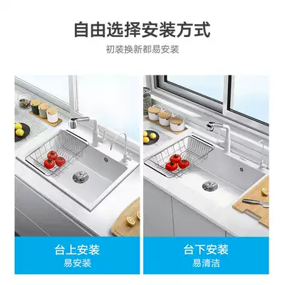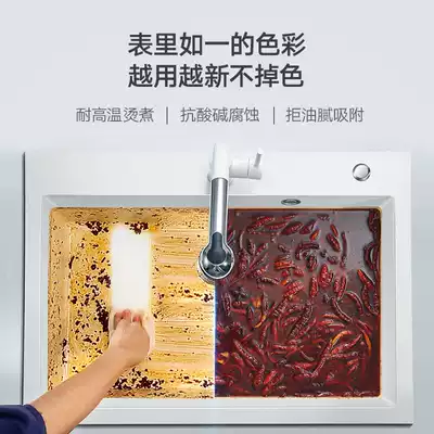 Hefty integral cabinet quartz stone sink White and Black large single sink vegetable sink sink drain basket set table Upper and Lower Basin