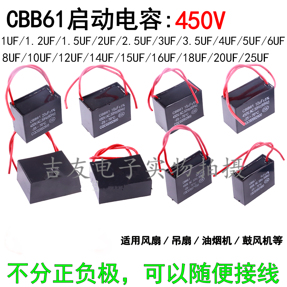 CBB61 fan start capacitor 1 2 1 5 1 8 2 2 2 2 5 3 4 5-20UF ceiling fan lampblack machine