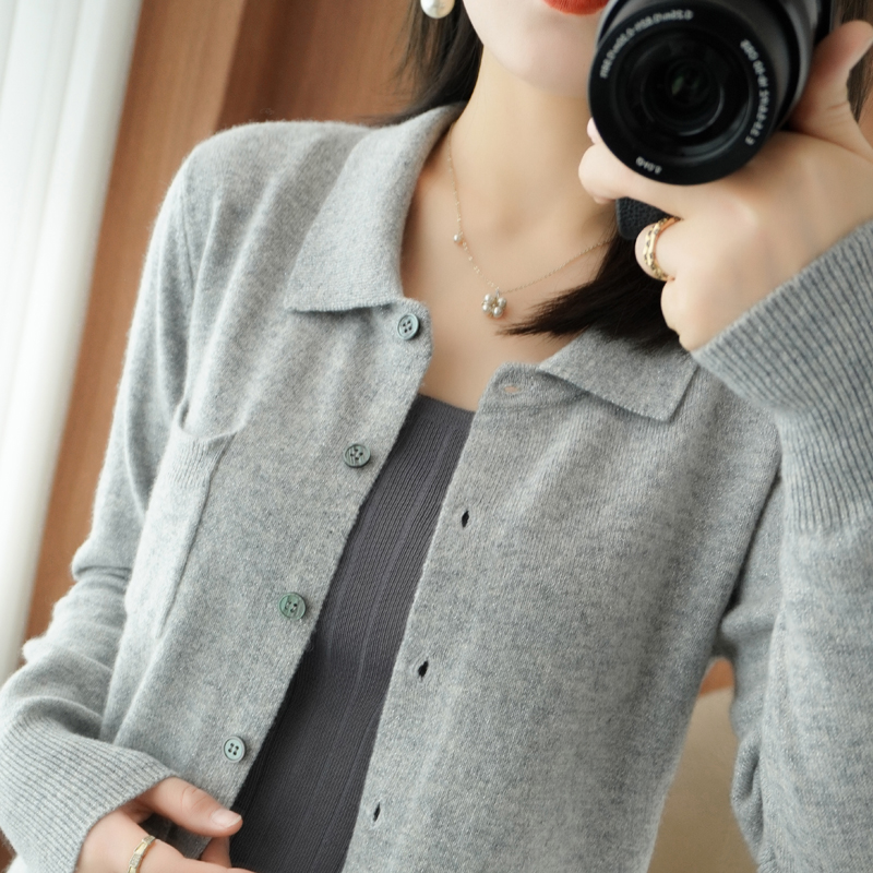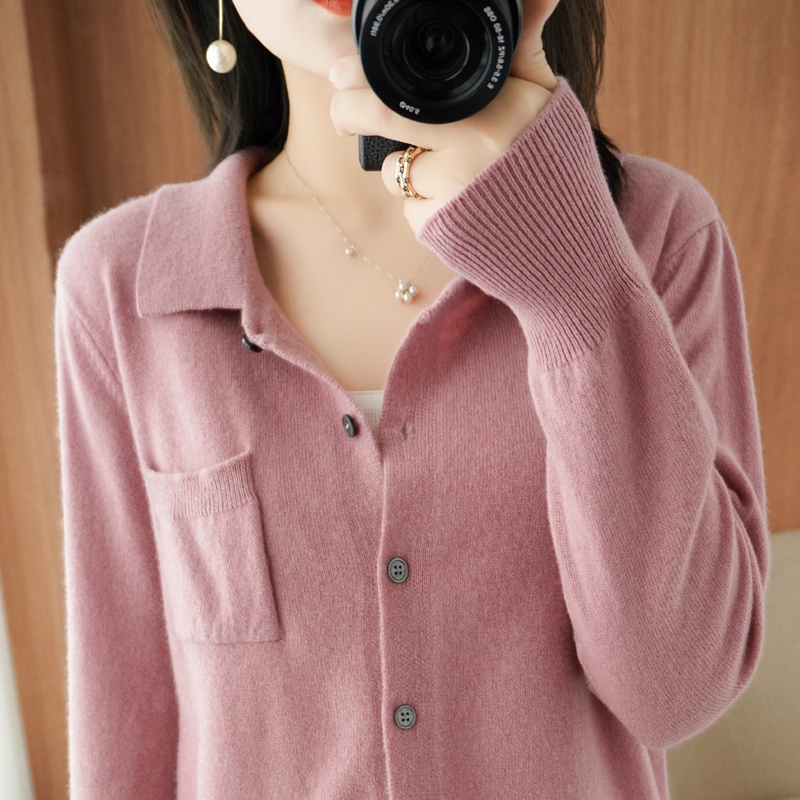 Cashmere cardiovert jacket woman 2021 Spring new Korean version 100 hitch loose goat sweatshirt long sleeve jacket needle-cardiovert blouse