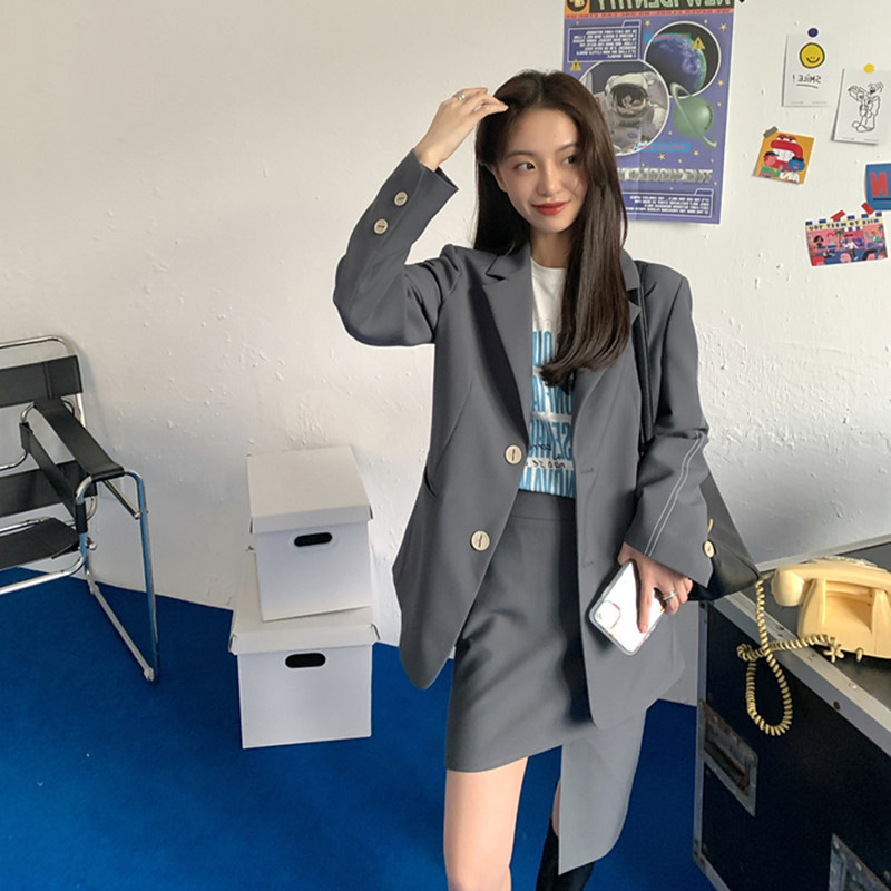 Grey suit jacket with irregular half-body dress