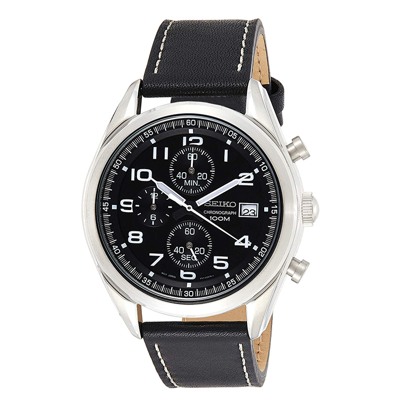 Seiko SEIKO watch belt fashion three-eye luminous waterproof black quartz men's watch SSB271P1