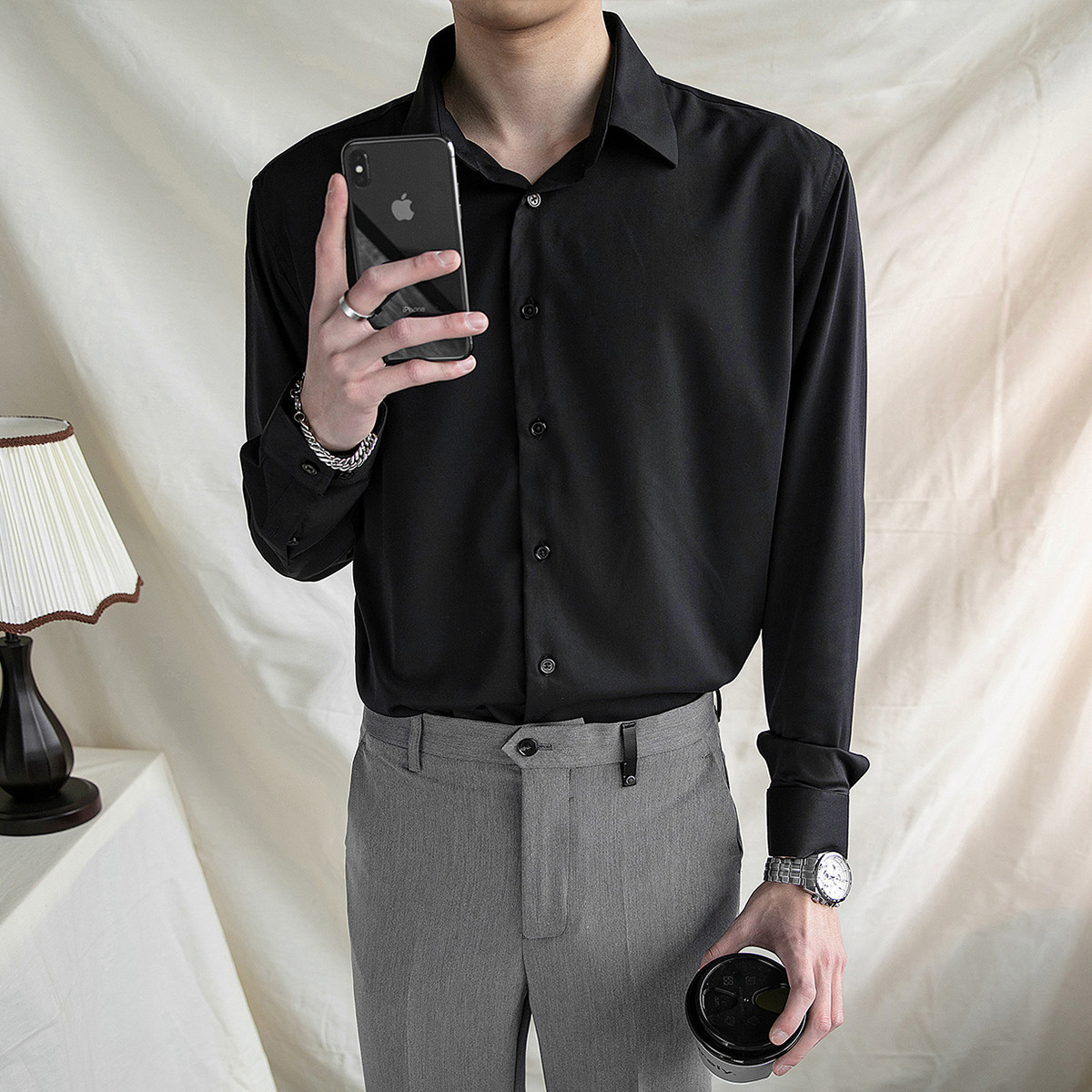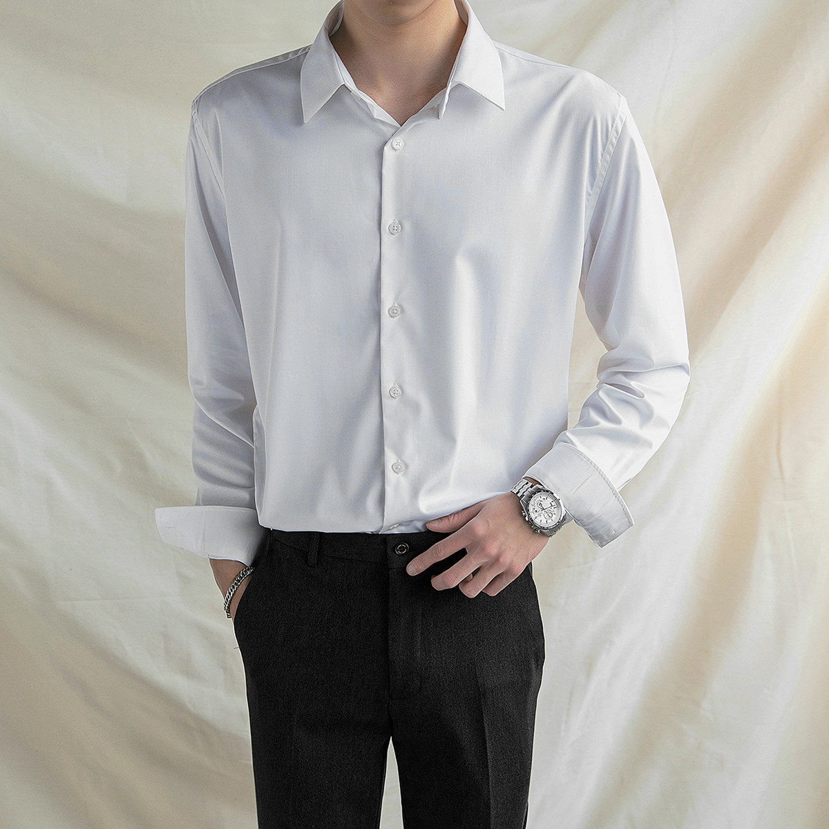 Men's long-sleeved shirt solid color versatile casual white shirt Korean version slim fashion business formal wear undershirt inch shirt tide