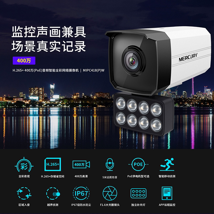 Waterstar security 4 million smart full-carnivals MERCURY Home 3 million POE OUTDOOR 8 LIGHT MONITOR